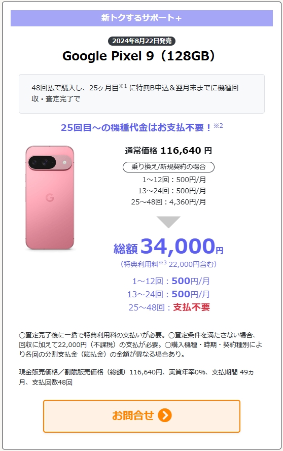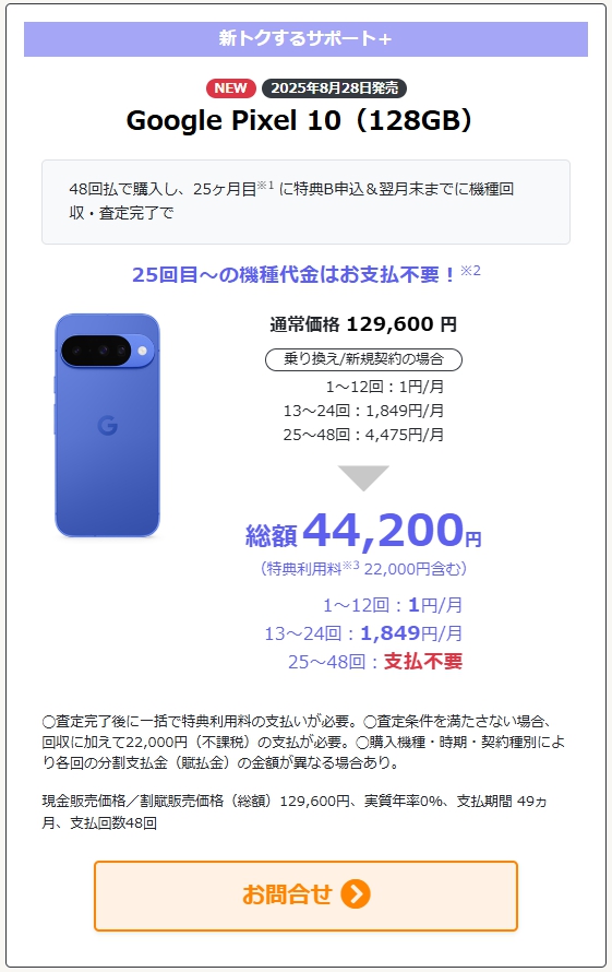 新トクするサポート | 通常価格 | 月額 | 実質負担額 | |
