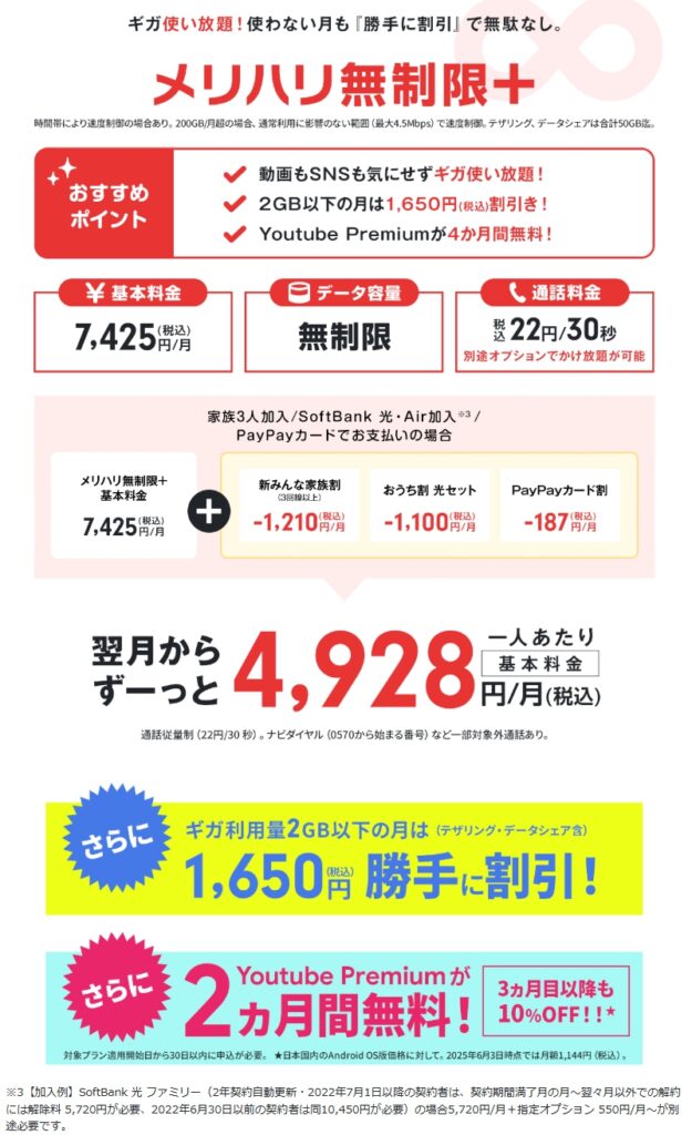 ソフトバンクでは毎月187円(税込)の割引を受けることができます♪