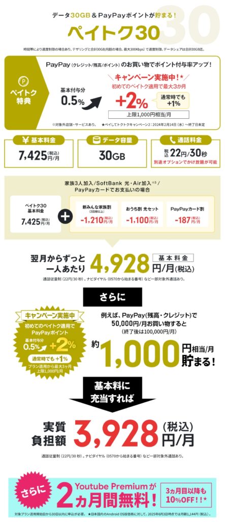 - 適用条件:請求締日時点で、PayPayカード又はPayPayカード ゴールドが、ご利用料金のお支払い方法として適用されているとき。※家族カードも対象です。