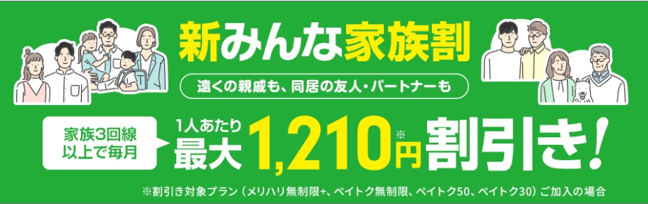 - 「家族データシェア」、「家族おトク割」などの一部サービスは併用できません。