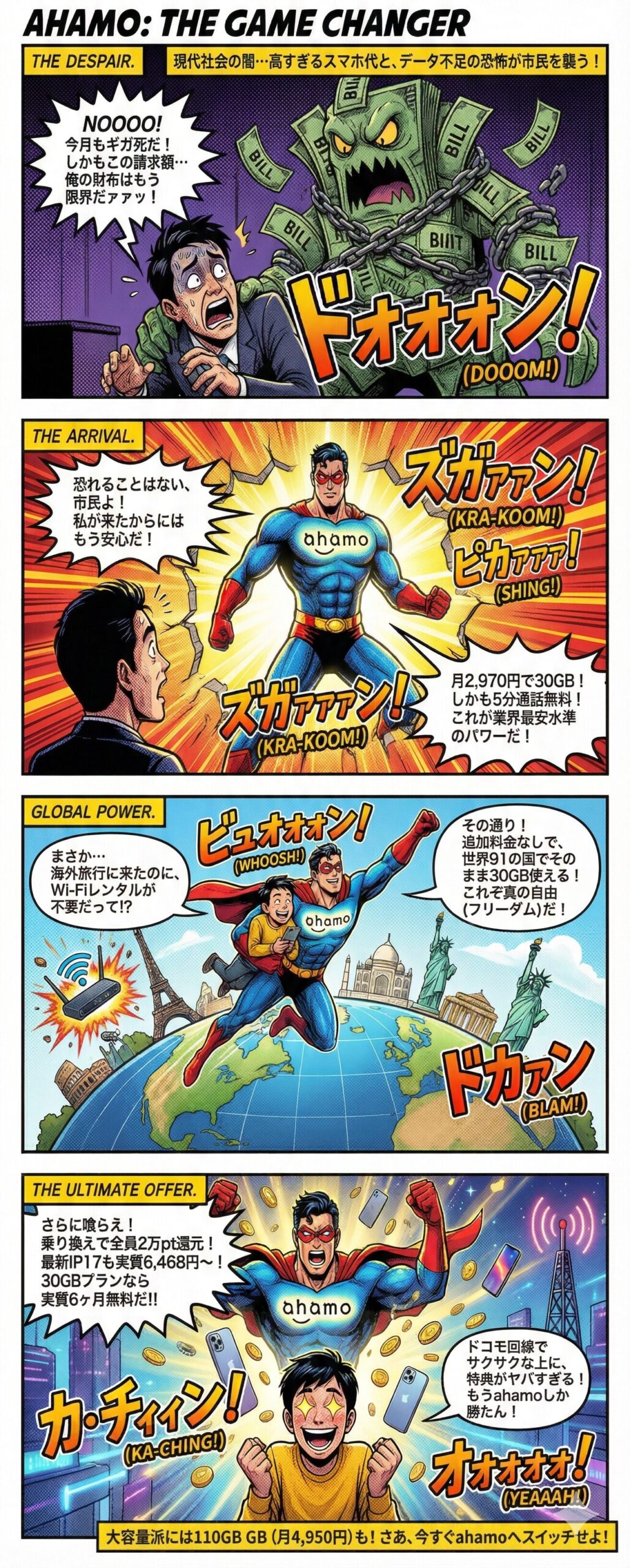 ahamo(アハモ)料金を徹底解説|30GB 2,970円/110GB 4,950円|乗換えで20,000pt還元/業界最安級