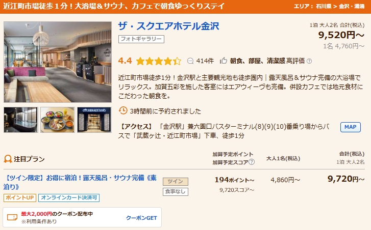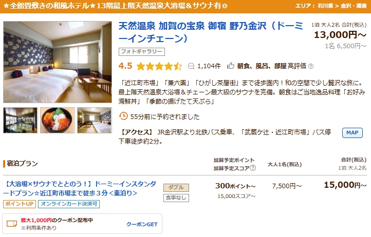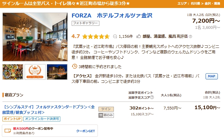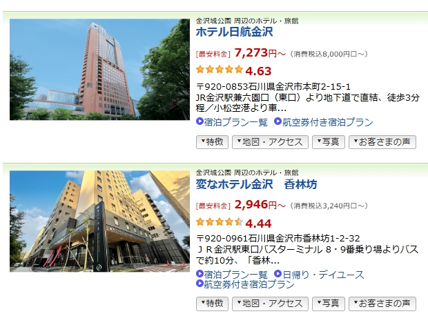 メインは、金沢を周り、 宿をどこに泊まるかが大きなポイントとなります。