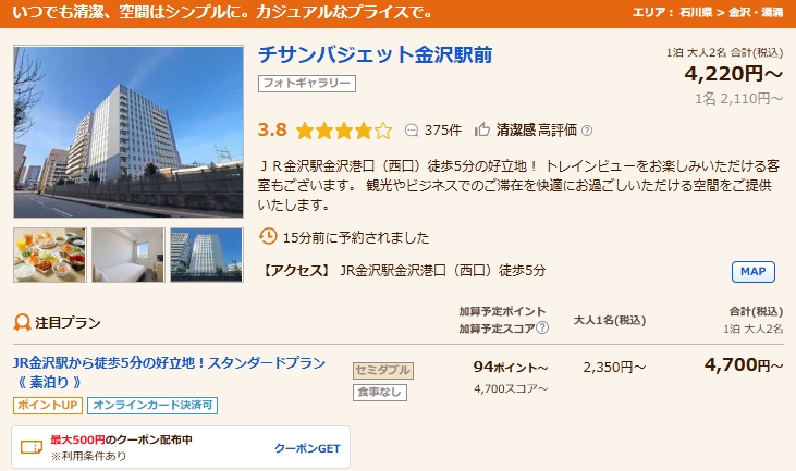 会員登録をすることで、割引プランやポイント還元などの特典を受けることができ、宿泊ごとに貯まったポイントは次回の予約に利用可能です。また、エリアや料金、部屋タイプ、食事プラン、利用者のレビューなど、多様な条件で宿を検索できる点も特徴です。