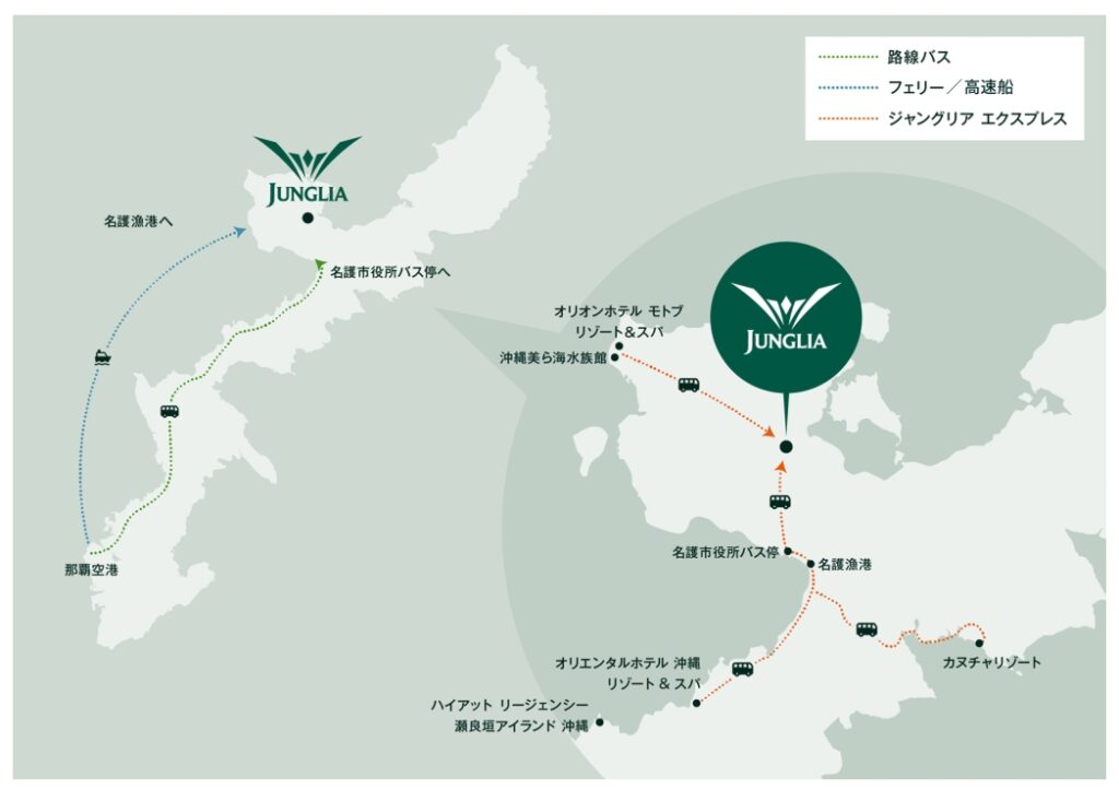 JUNGLIAオフィシャルホテルズなら、ホテルからジャングリア沖縄へのアクセスが便利な直行バス「ジャングリア エクスプレス」にご乗車いただけます!