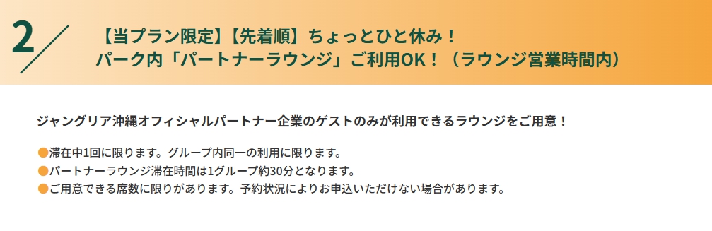スパ利用には来場の際に別途入湯税(おとなのみ150円)をお支払いください。入湯税に関する最新情報はオフィシャルWEBサイトをご確認ください。(2025年7月時点の情報となります。)入湯税に関する最新情報はJUNGLIA OKINAWA オフィシャルWEBサイトをご確認ください。(2025年7月時点)