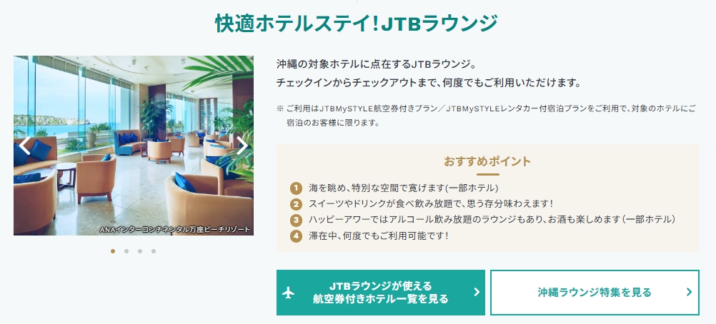 JTBなら対象ホテルの「航空券付きプラン」お申込みで専用ラウンジを料金不要でご利用できます!