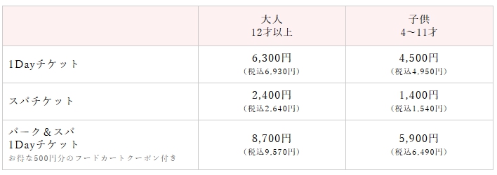 設定期間:2025年7月25日~2026年5月8日(パーク入場、スパ利用は滞在中1回となります)