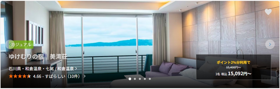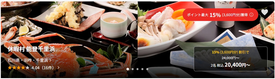 会員登録をすることで、割引プランやポイント還元などの特典を受けることができ、宿泊ごとに貯まったポイントは次回の予約に利用可能です。また、エリアや料金、部屋タイプ、食事プラン、利用者のレビューなど、多様な条件で宿を検索できる点も特徴です。