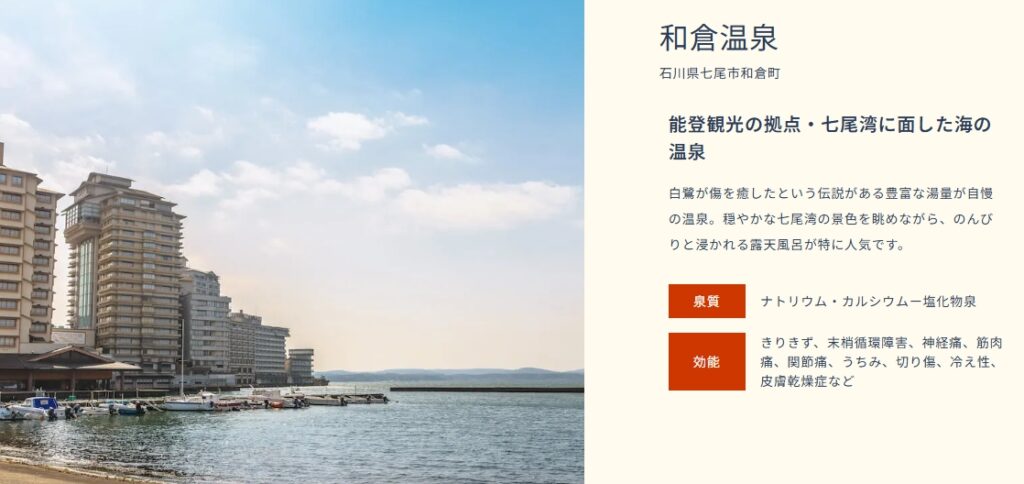 美人の湯と琥珀色の温泉、金沢や氷見へのアクセス良好。