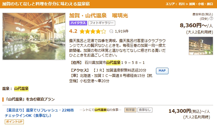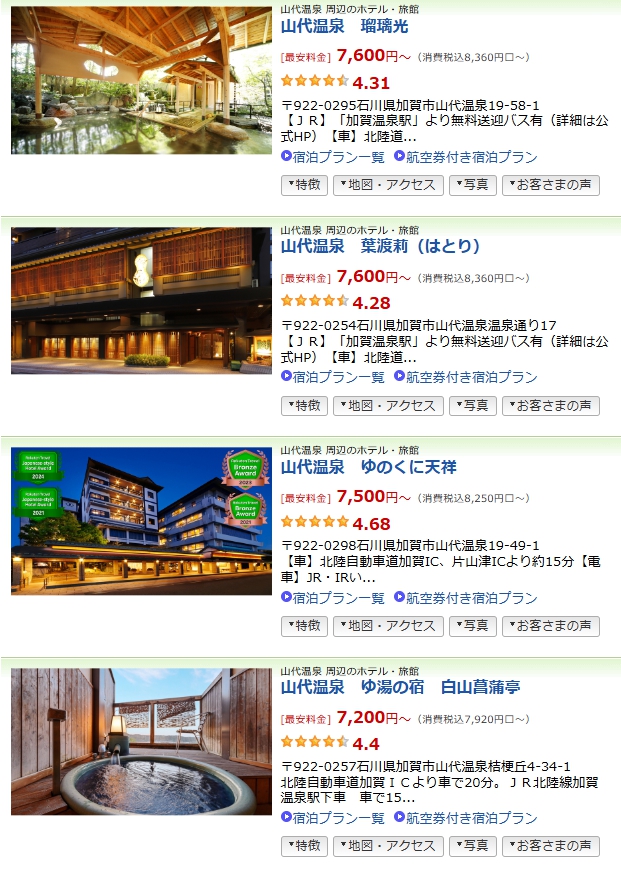 加賀の名湯 山代温泉、ビュッフェと遊び、車10分。