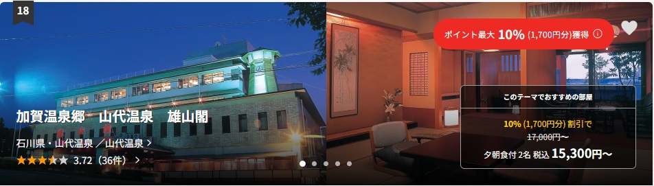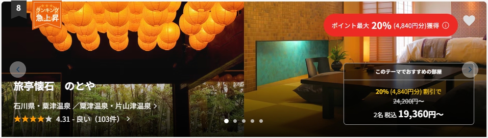 せっかくの石川旅行なら、温泉宿に泊まりたい。JTBのお客様に好評価をいただいている人気の宿を厳選してご紹介します。