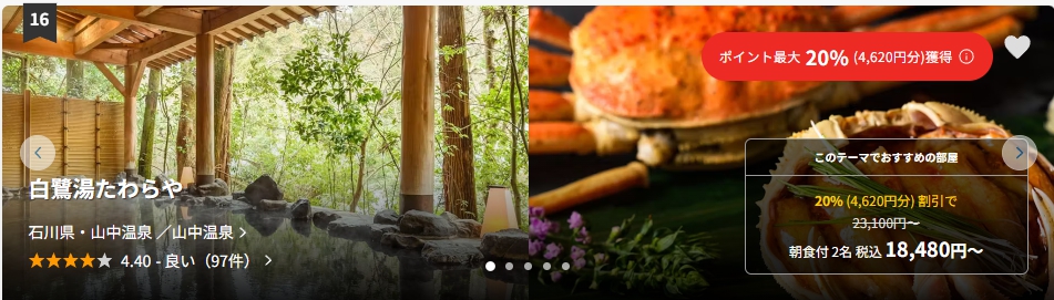 せっかくの石川旅行なら、かにを食べられる宿に泊まりたい。JTBのお客様に好評価をいただいている人気の宿を厳選してご紹介します。