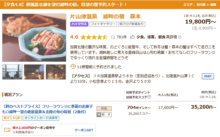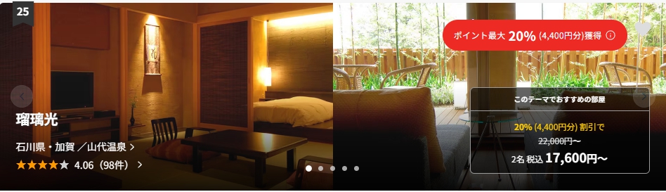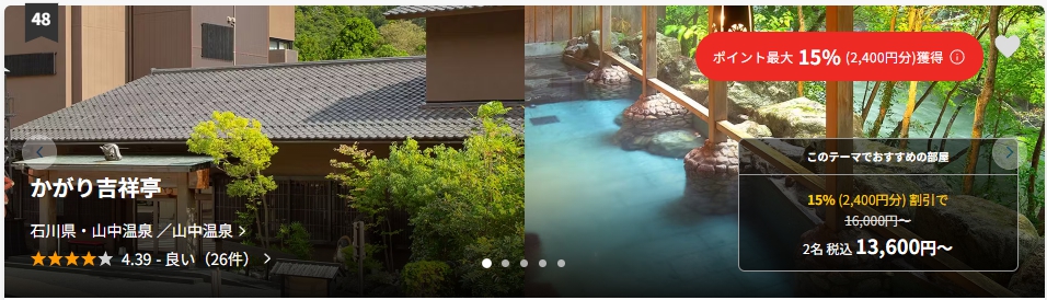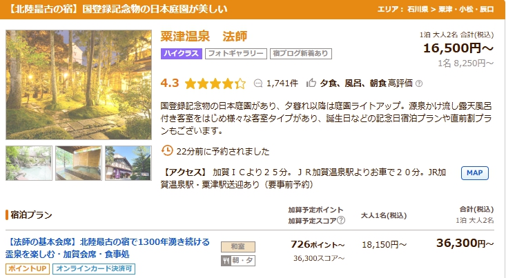 会員登録をすることで、割引プランやポイント還元などの特典を受けることができ、宿泊ごとに貯まったポイントは次回の予約に利用可能です。また、エリアや料金、部屋タイプ、食事プラン、利用者のレビューなど、多様な条件で宿を検索できる点も特徴です。