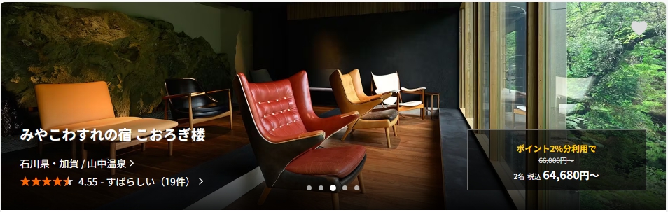 一般的な宿泊予約サイトと比べて、ラグジュアリー志向の施設が多く掲載されており、質の高い滞在を求める利用者に向いています。
