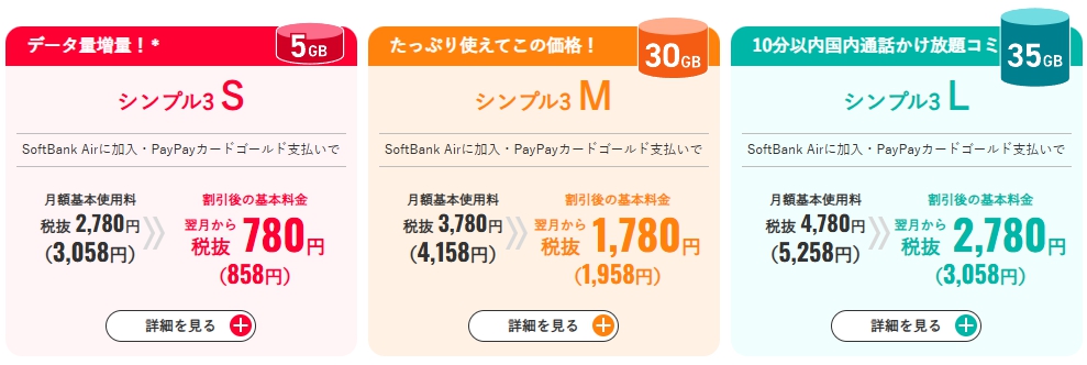 ※表示価格は「シンプル3 M/L」をご利用の場合の金額です。