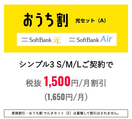 *SoftBank Airに加入でおうち割光セット 1,650円/月割引き
