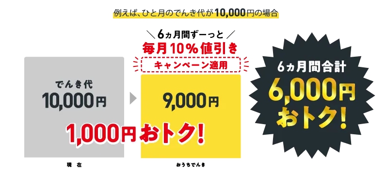 6ケ月間 電気料金総額10%OFF キャンペーン実施中♪
