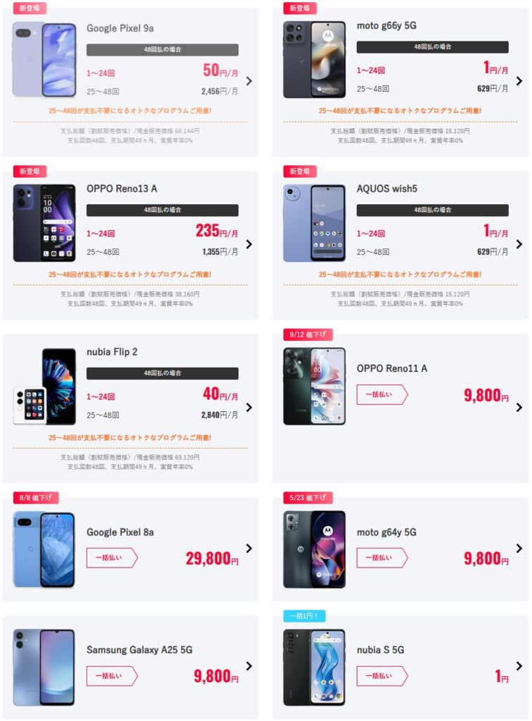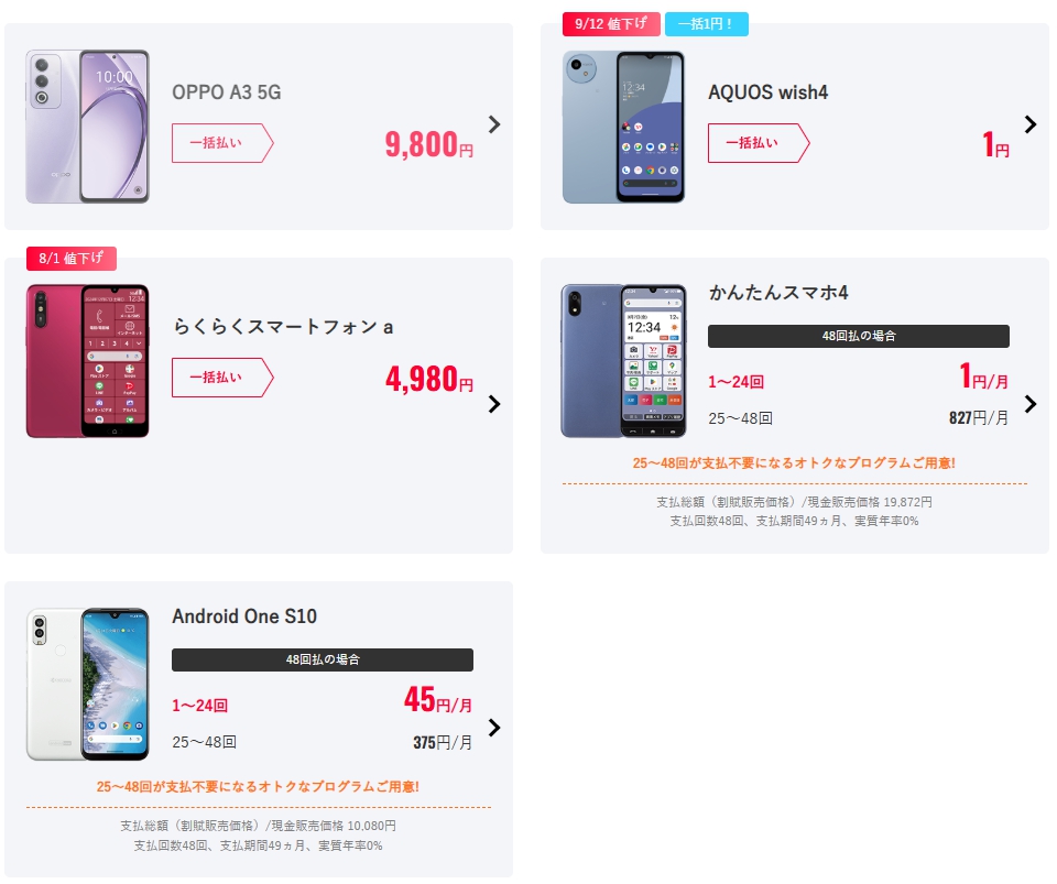 Y!mobile(ワイモバイル)の人気機種が大幅値下げ♪