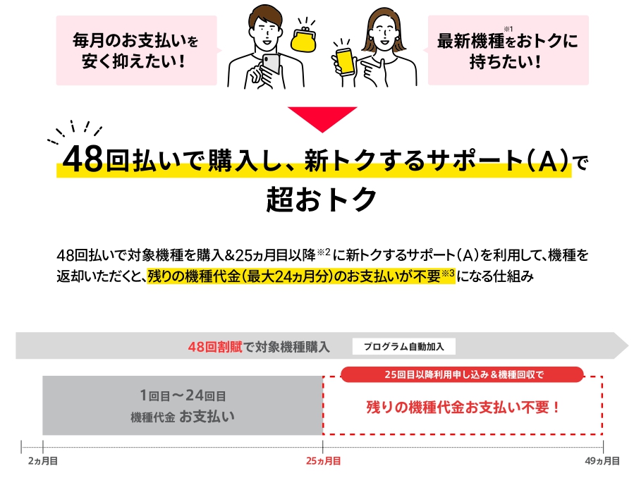 新トクするサポートA 利用価格 (乗換え) | 1~24回 月額 | 実質負担額 |