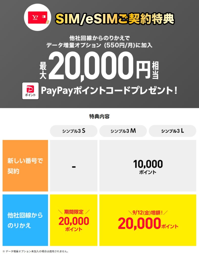 他社から乗換え&データ増量オプションに加入で最大20,000円相当PayPayポイントプレゼント♪