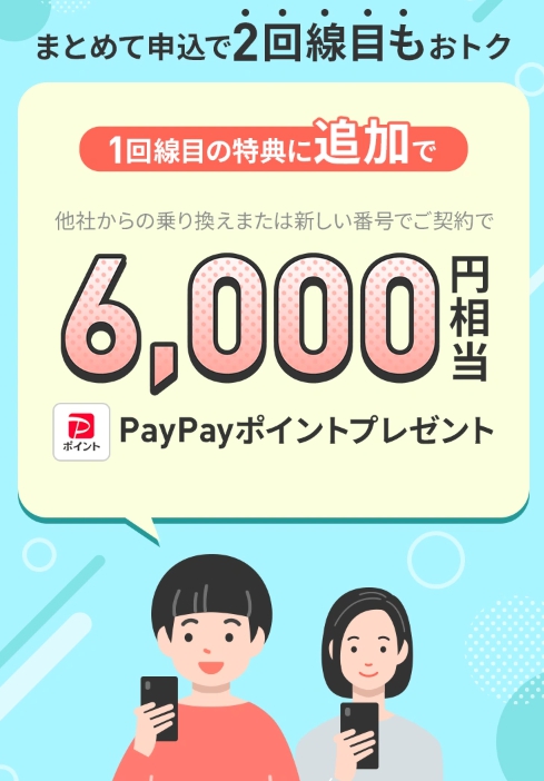 ②LINEMOベストプラン V : 6,000円相当PayPayポイントプレゼント♪