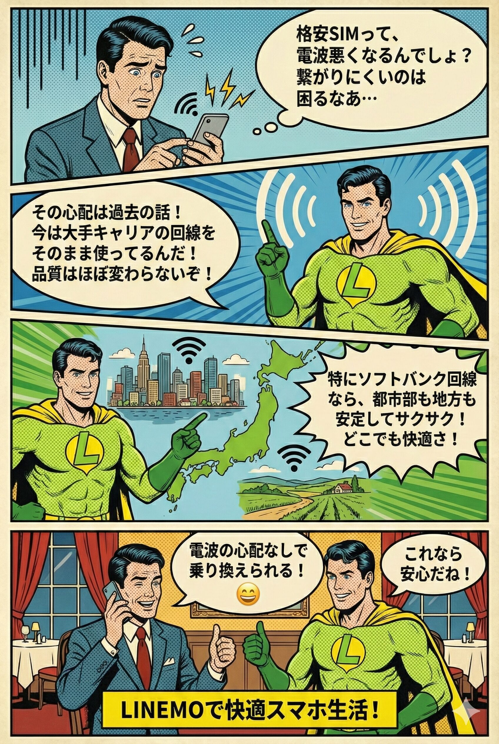「格安SIMって電波悪くなるんでしょ?」って心配、よく聞きますよね? 結論、その心配はもう過去の話!今は大手キャリアの回線をそのまま使ってるから、品質はほぼ変わらないんです。