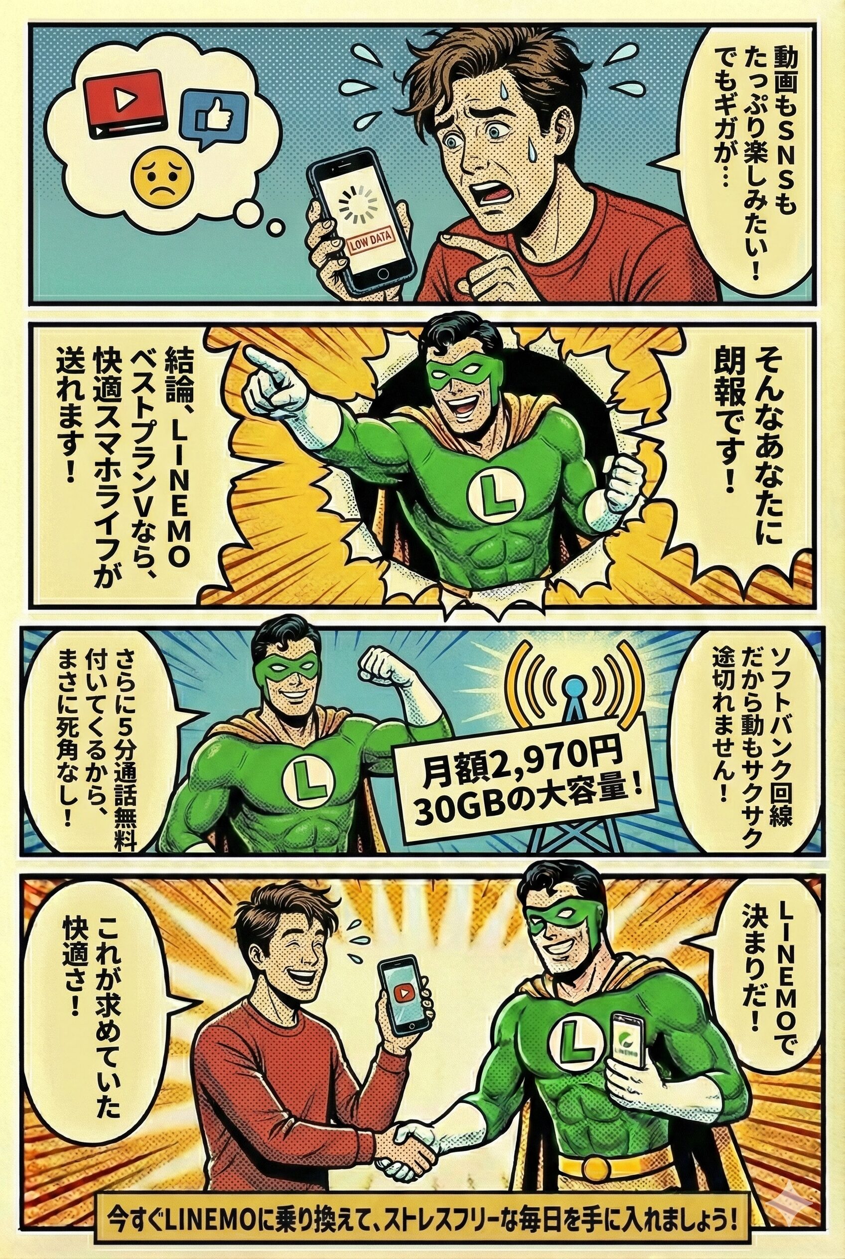 今すぐLINEMOに乗り換えて、ストレスフリーな毎日を手に入れましょう!