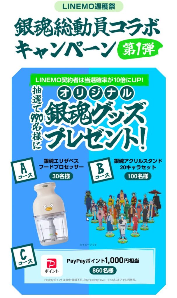 ①LINEMOベストプラン :3,000円相当PayPayポイントプレゼント